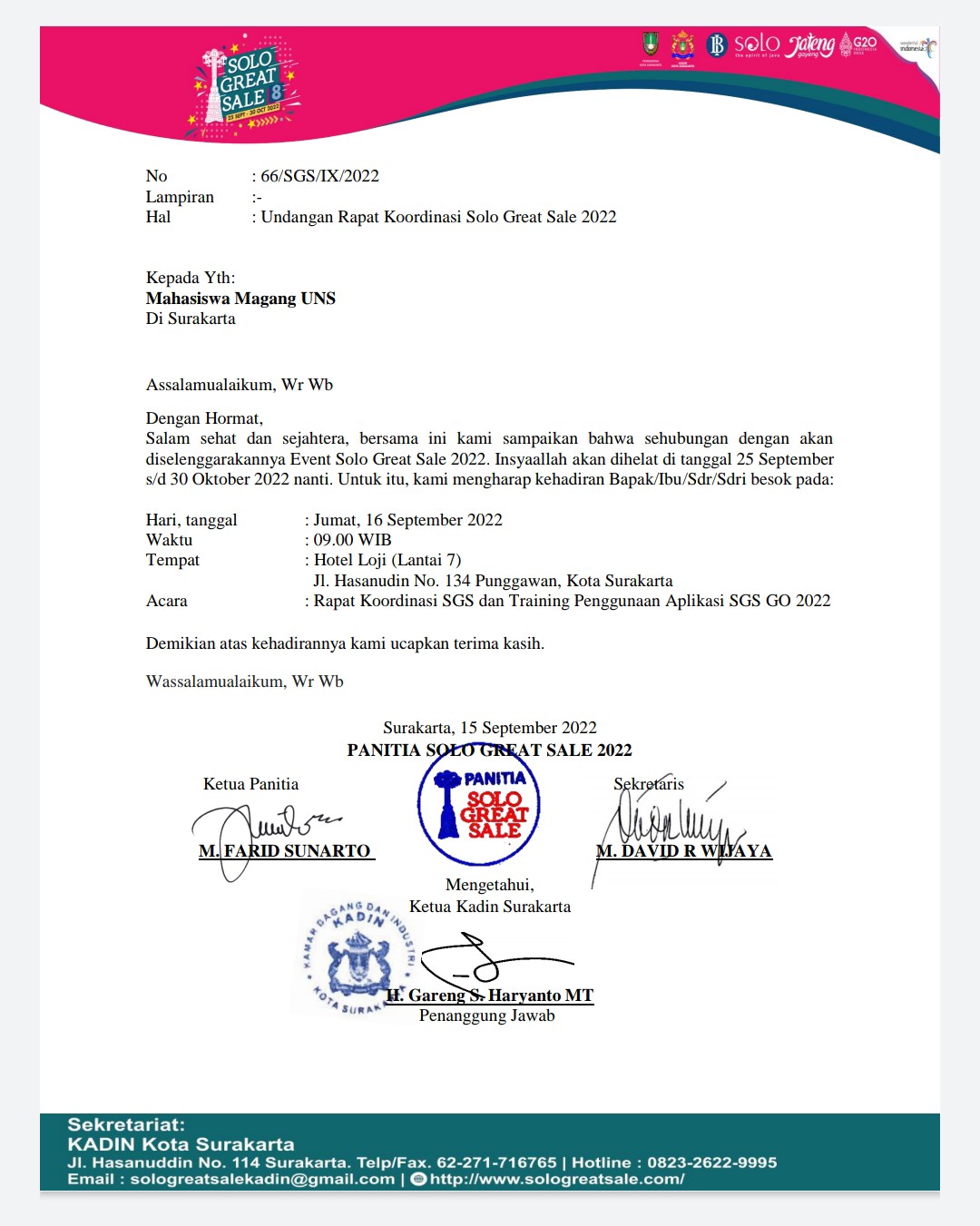 Seluruh peserta wajib hadir tepat waktu dan menandatangani presensi.